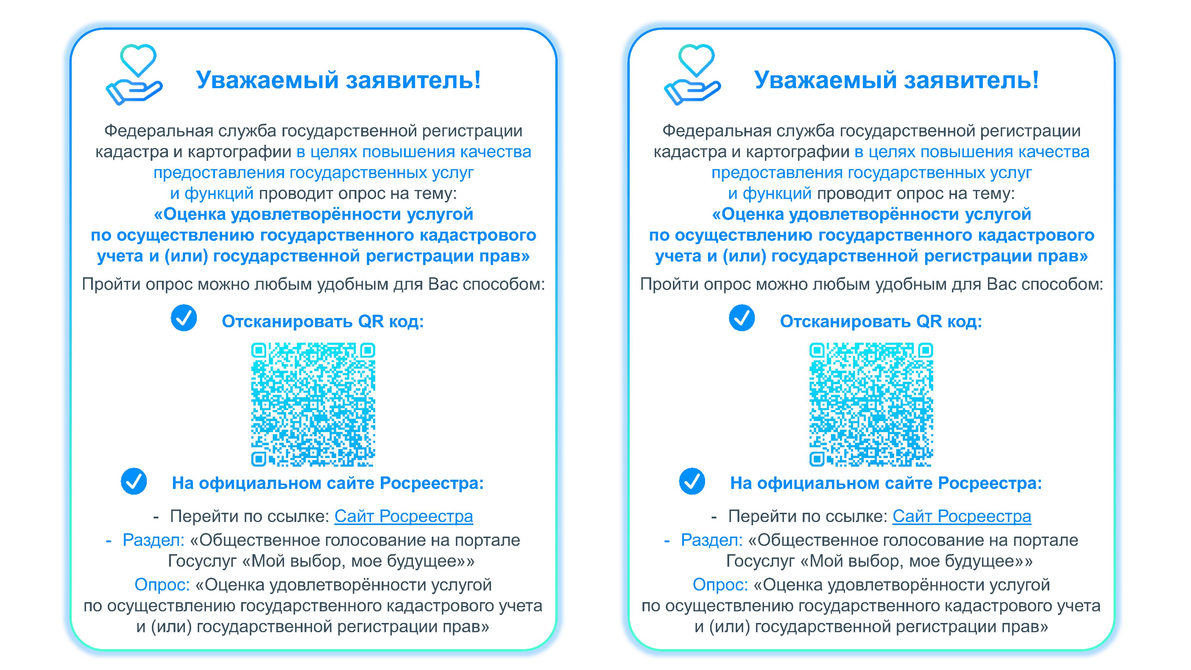 Опрос на тему: Оценка удовлетворенности услугой по осуществлению государственного кадастрового учета и (или) государственной регистрации прав.