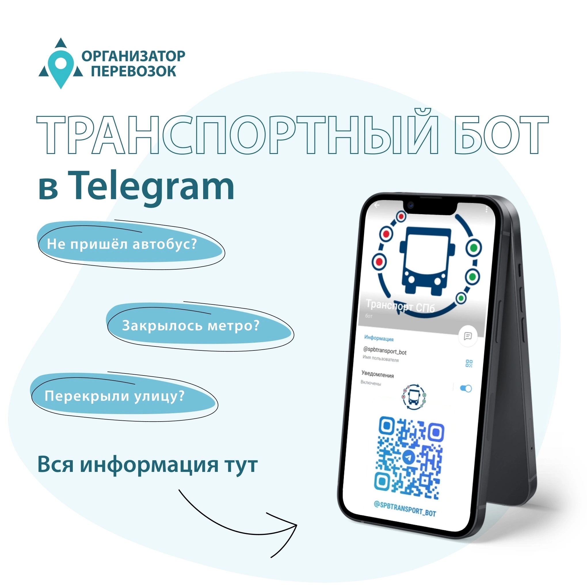 При поддержке Комитета по транспорту СПб ГКУ «Организатор перевозок» создан социальный проект «Чат-бот» для пользователей мессенджера Telegram (далее – Бот), который персонально информирует об изменениях маршрутов наземного транспорта и метрополитена.