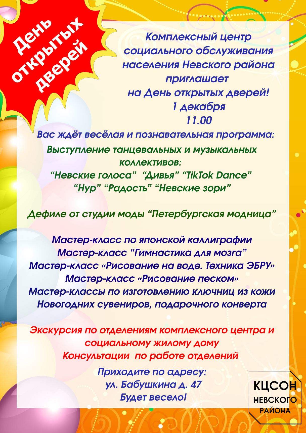 В 2022 году проведен текущий ремонт помещений в отделениях по адресам: ул. Седова, д. 122, ул. Бабушкина, д. 47, корп. 2, 3-й Рабфаковский пер. д. 5. В рамках «Программы энергосбережения и повышения эффективности СПб ГБУСОН «КЦСОН Невского района» произведена замена светильников с люминесцентными лампами на энергосберегающие светильники с диодными лампами.