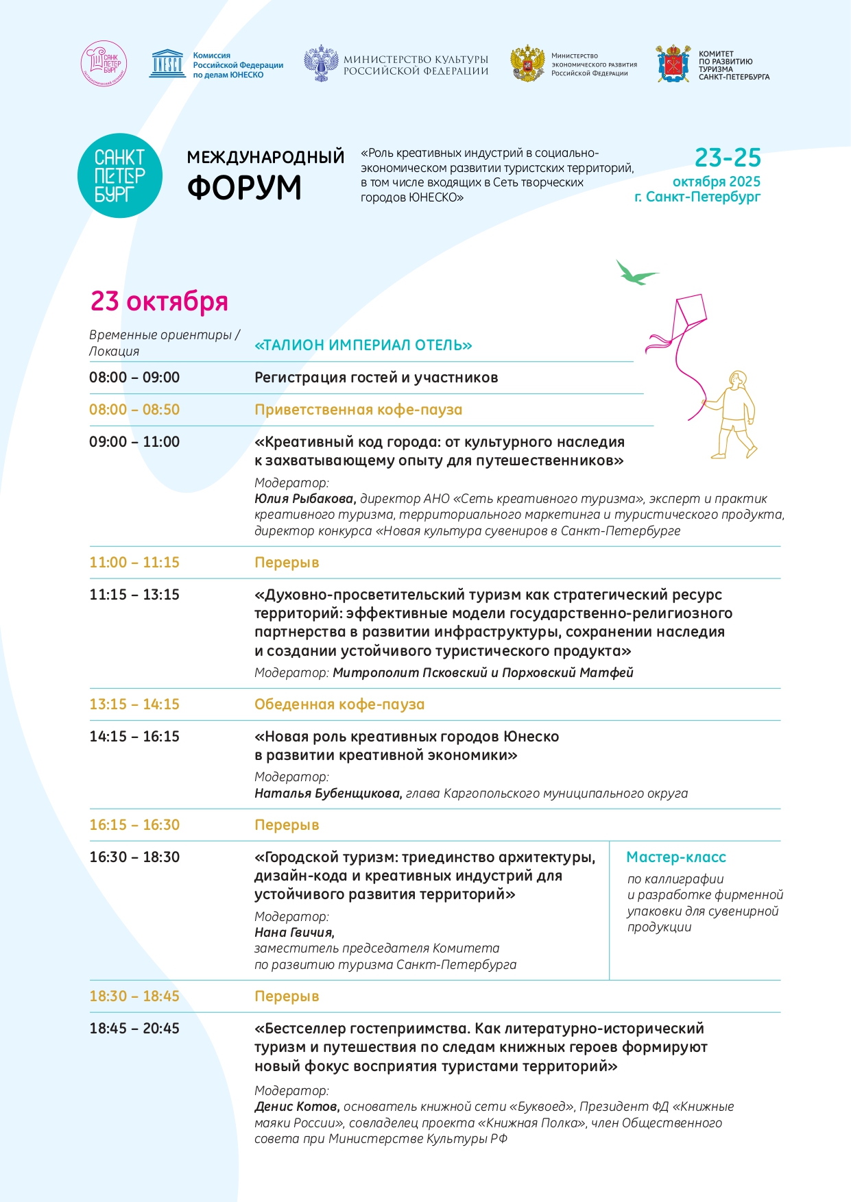 В период с 23 по 25 октября текущего года, в рамках участия Санкт-Петербурга в программе ЮНЕСКО «Сеть креативных городов», Комитет по развитию туризма Санкт-Петербурга под эгидой Комиссии Российской Федерации по делам ЮНЕСКО проводит: