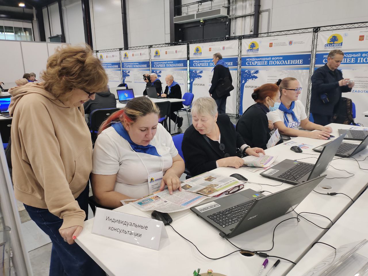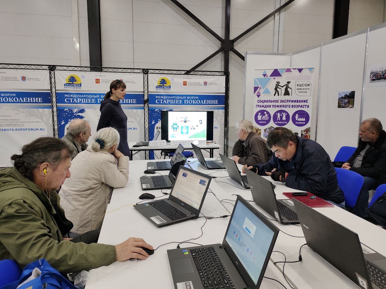 Все время работы Форума пользовался интересом компьютерный класс, организованный заведующей социально-досугового отделения комплексного центра Невского района Люсиной Александрой Александровной и специалистами по социальной работе отделения. Были проведены мастер-классы по компьютерной грамотности, по планшету/смартфону, лекции по финансовой грамотности в интернет- пространстве, давались индивидуальные консультации.