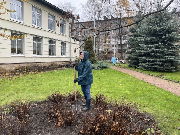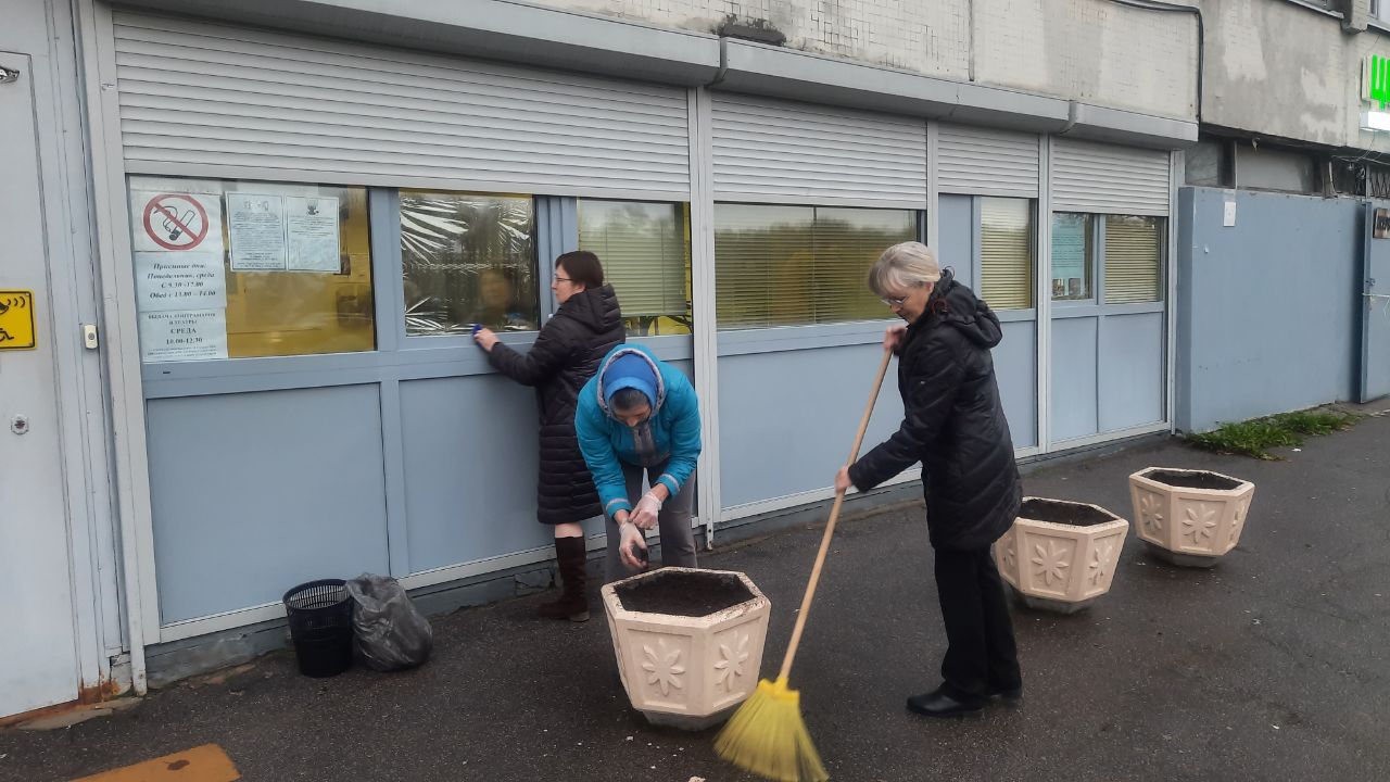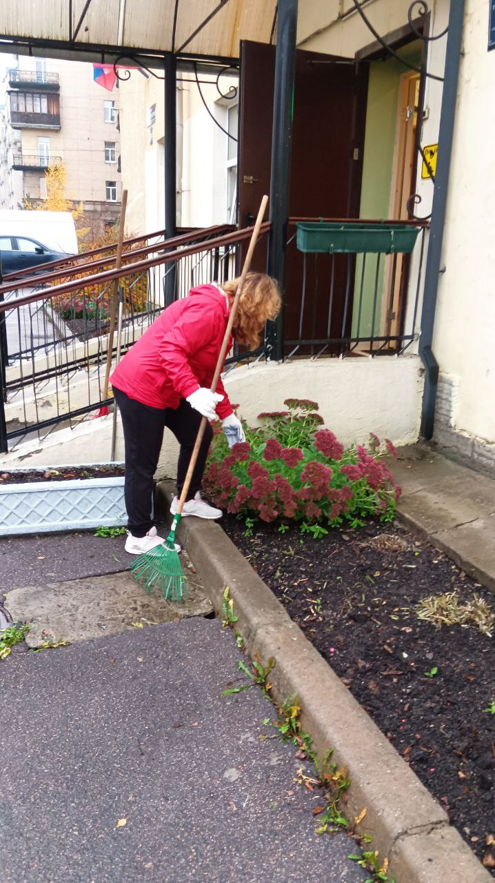 Привели в порядок клумбы и вазоны возле отделений дневного пребывания на пр. Обуховской Обороны, 95 и отделения срочного социального обслуживания № 2 на Товарищеском пр., 20/27. Помыли фасады входной группы отделения социальной реабилитации на Дальневосточном пр., д.8 и отделения дневного пребывания на пр. Пятилеток, д. 9. Убрали от листвы газоны возле социального жилого дома, где расположены отделения временного проживания, социальной реабилитации и социально-досуговое отделение по адресу ул. Бабушкина, д. 47; возле отделения ночного пребывания лиц БОМЖ и занятий возле д. 5, по 3-му Рабфаковскому пер.; привели в идеальное состояние территорию земельного участка административного здания по адресу: д. 122 по ул. Седова, куда наши клиенты приходят за срочной социальной и экстренной психологической социальной помощью.